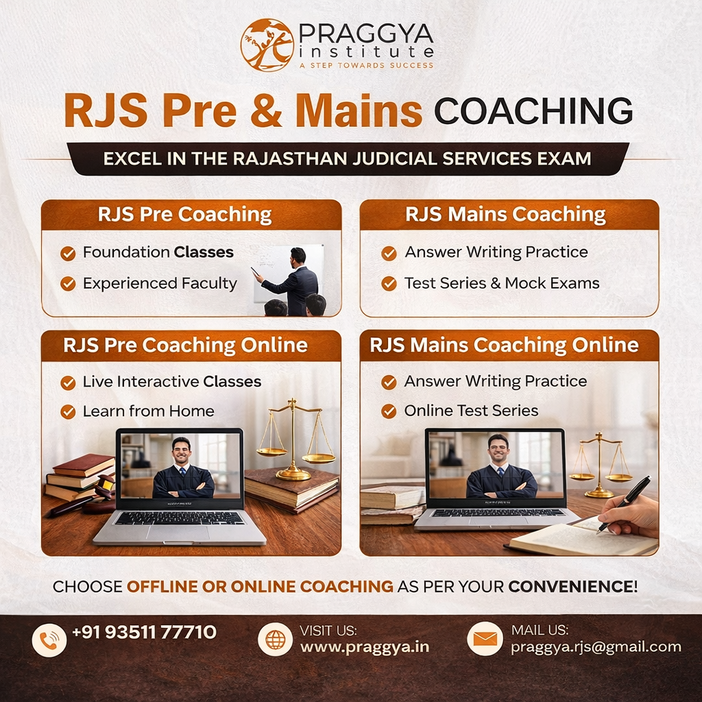 Top RJS Mains Coaching for Judiciary Aspirants Visit: https://praggya.in/course/offline-rjs-classes Master answer writing and advanced legal concepts with professional RJS Mains Coaching designed specifically for judiciary aspirants. Learn effective answer presentation, case law analysis, and in-depth legal interpretation to improve your mains exam performance. With expert mentors, structured study schedules, and regular evaluation of answers, Praggya Institute helps students strengthen their preparation and gain the confidence required to clear the RJS mains examination successfully.